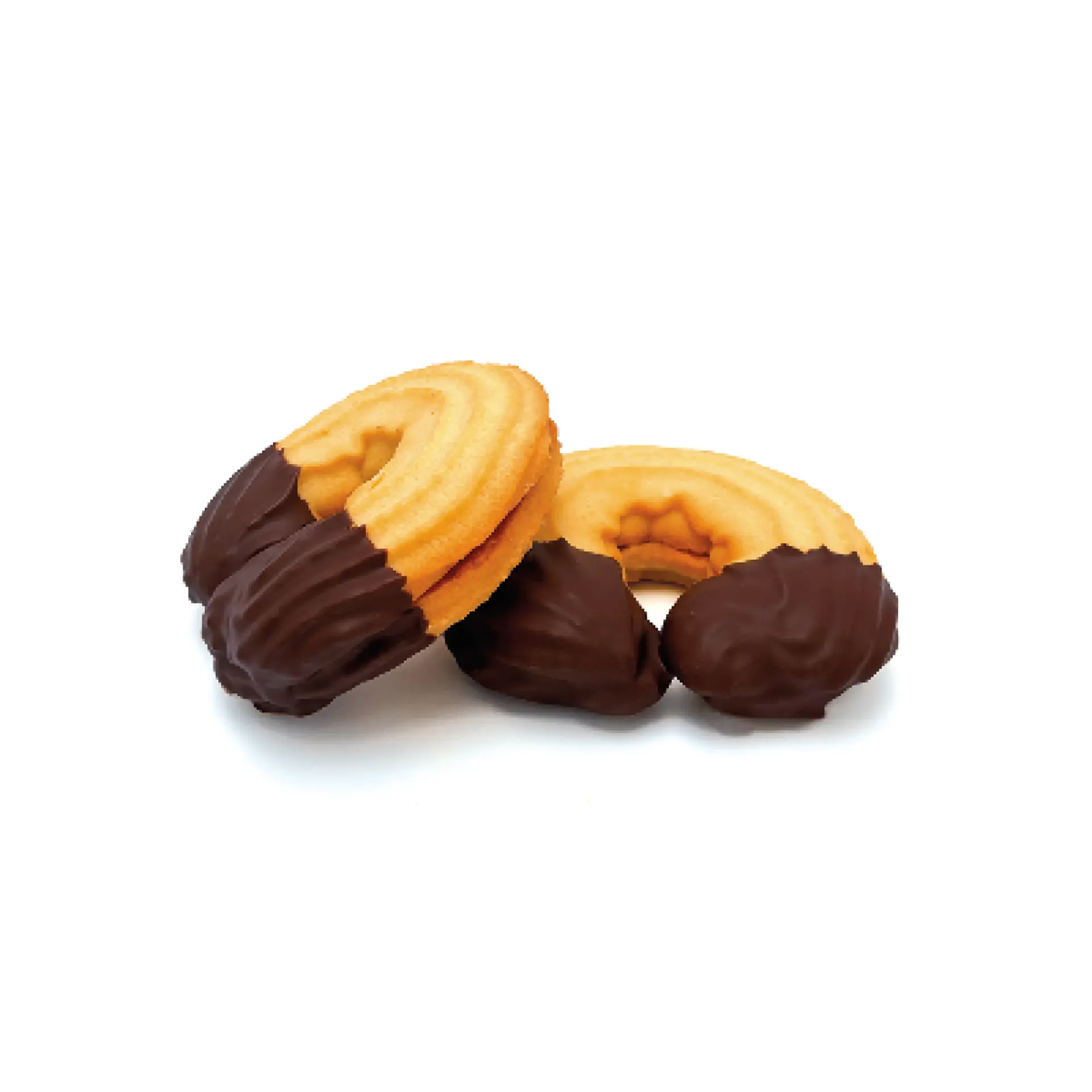 Unsere Linzerkipferl sind mürbe, spritzförmig geformte Doppelkekse, die mit Marillenmarmelade gefüllt und an den Enden in Schokolade getunkt sind