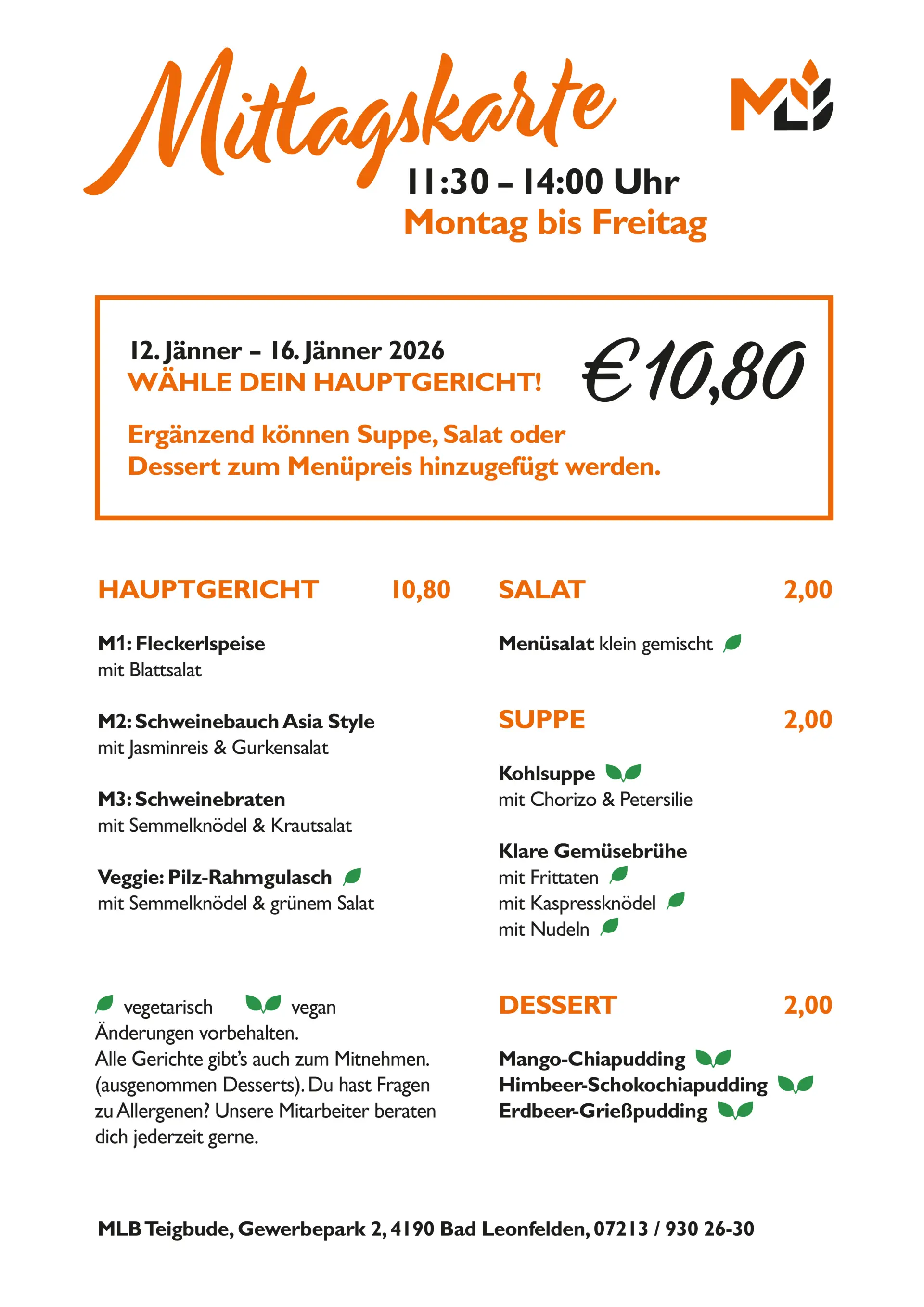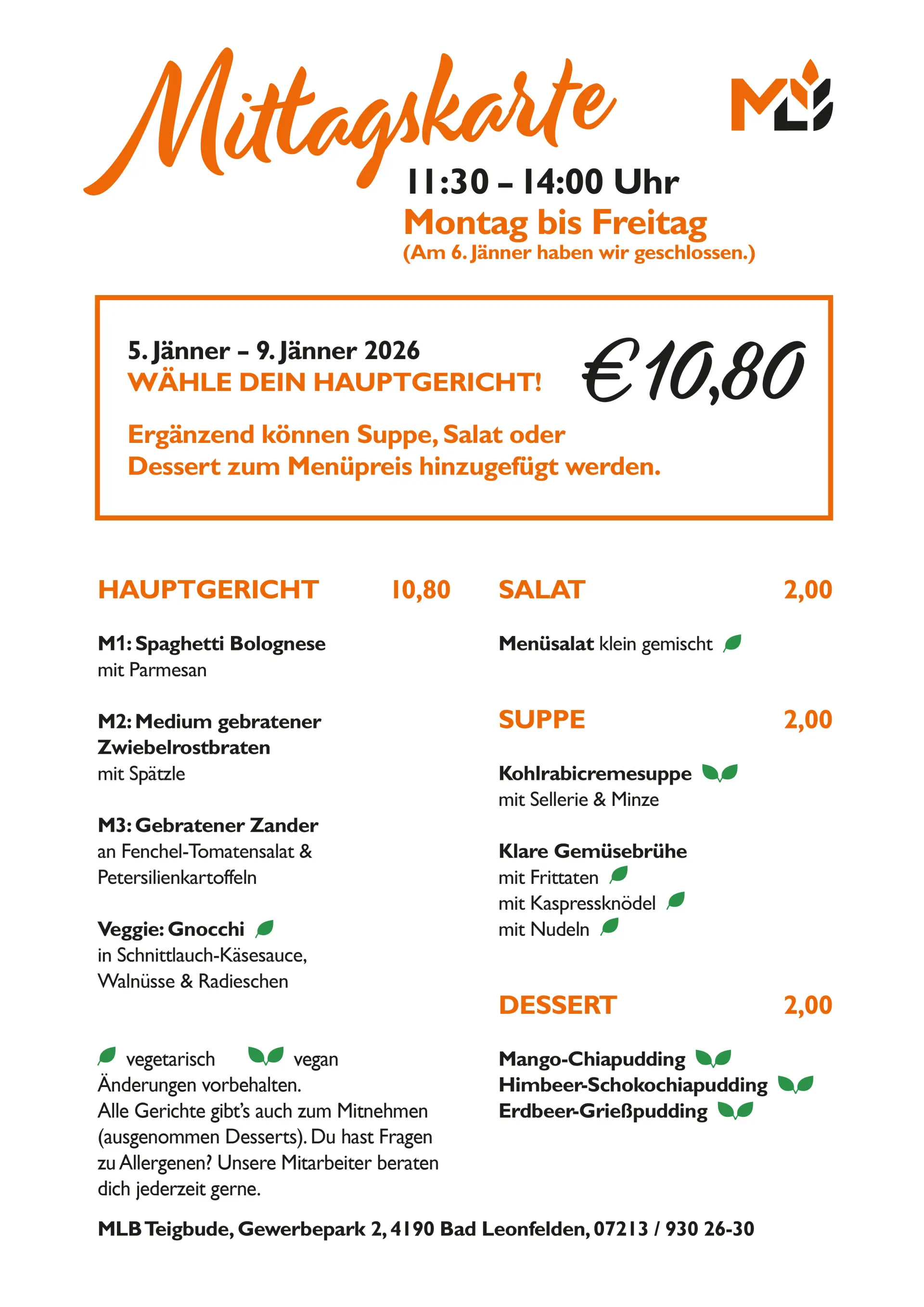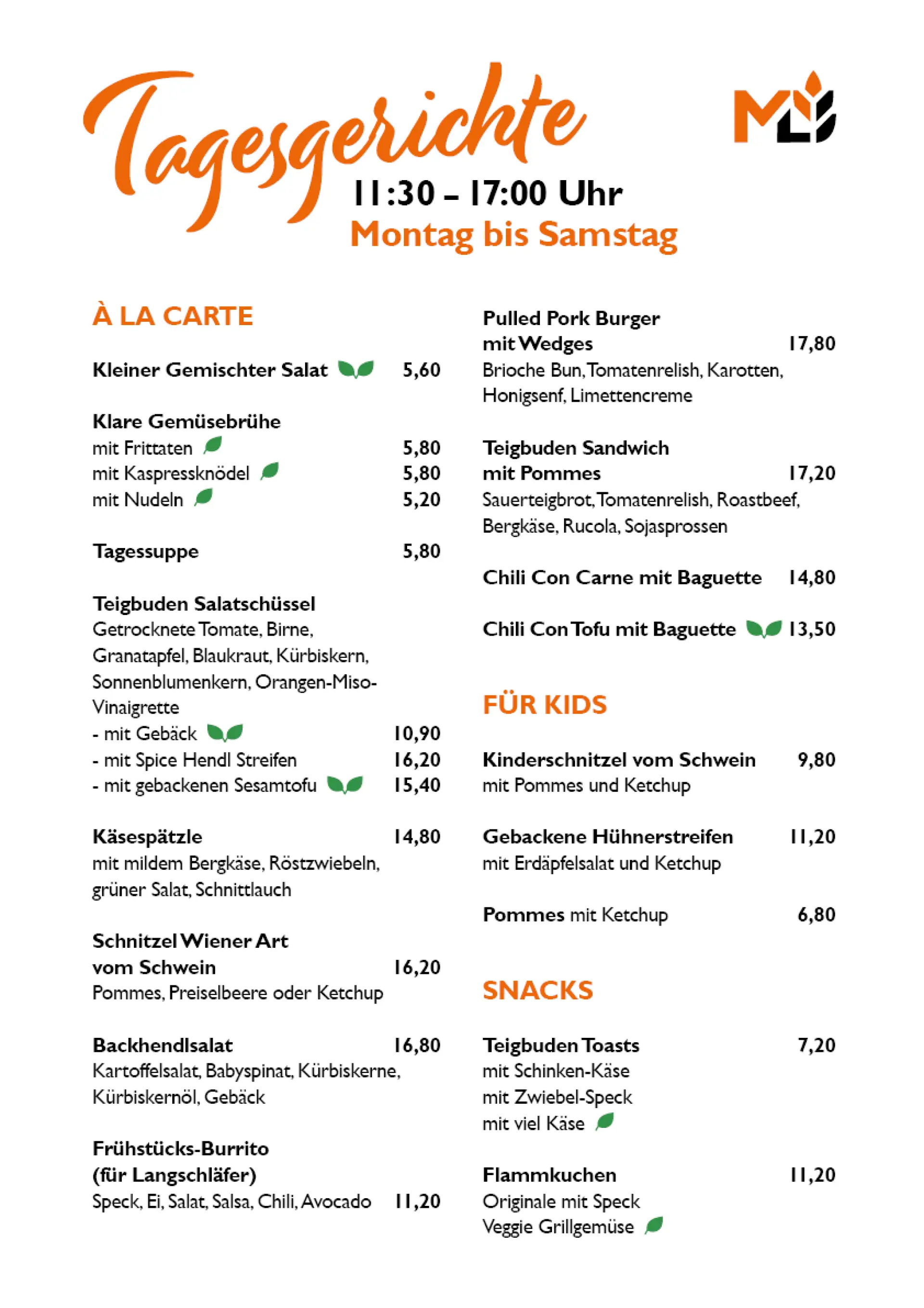 Mittagsmenüs in der Teigbude